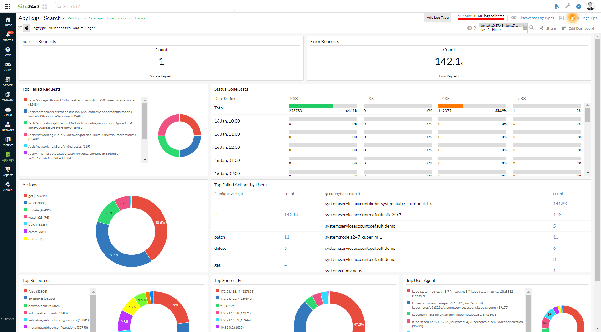 logging system with over 100 log types. Site24x7 enables effective management and troubleshooting of your Kubernetes cluster to monitor application health and ensure an exceptional customer experience.