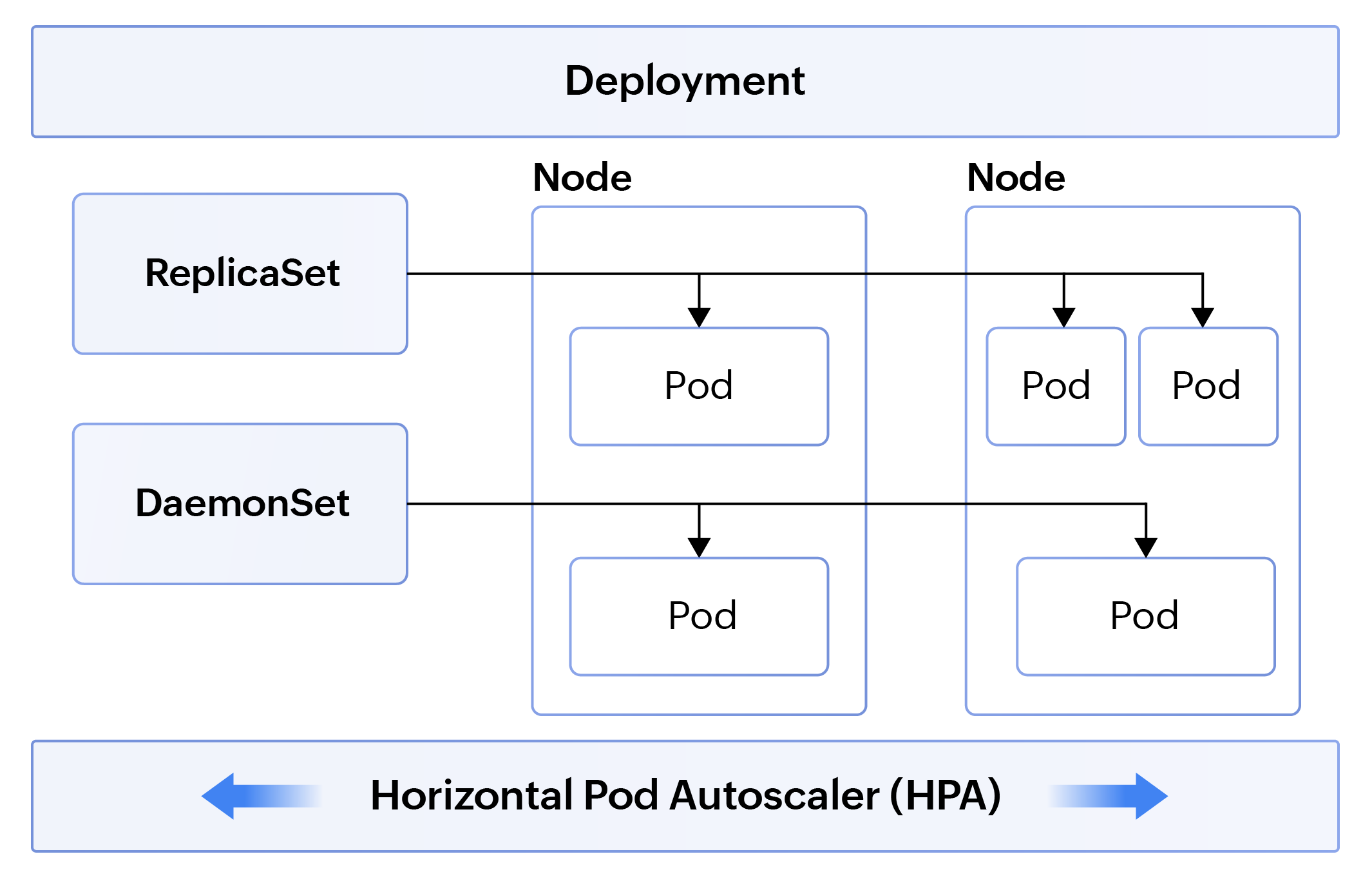 - Easily deploy the Site24x7 agent in minutes and instantly auto-discover all your workloads, including nodes, pods, deployments, Horizontal Pod Autoscaler (HPA), DaemonSets, and ReplicaSets.