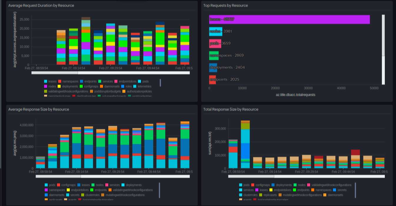 - Dashboards for visualizing the request latency, in-flight requests, etcd performance, and storage usage at a glance.