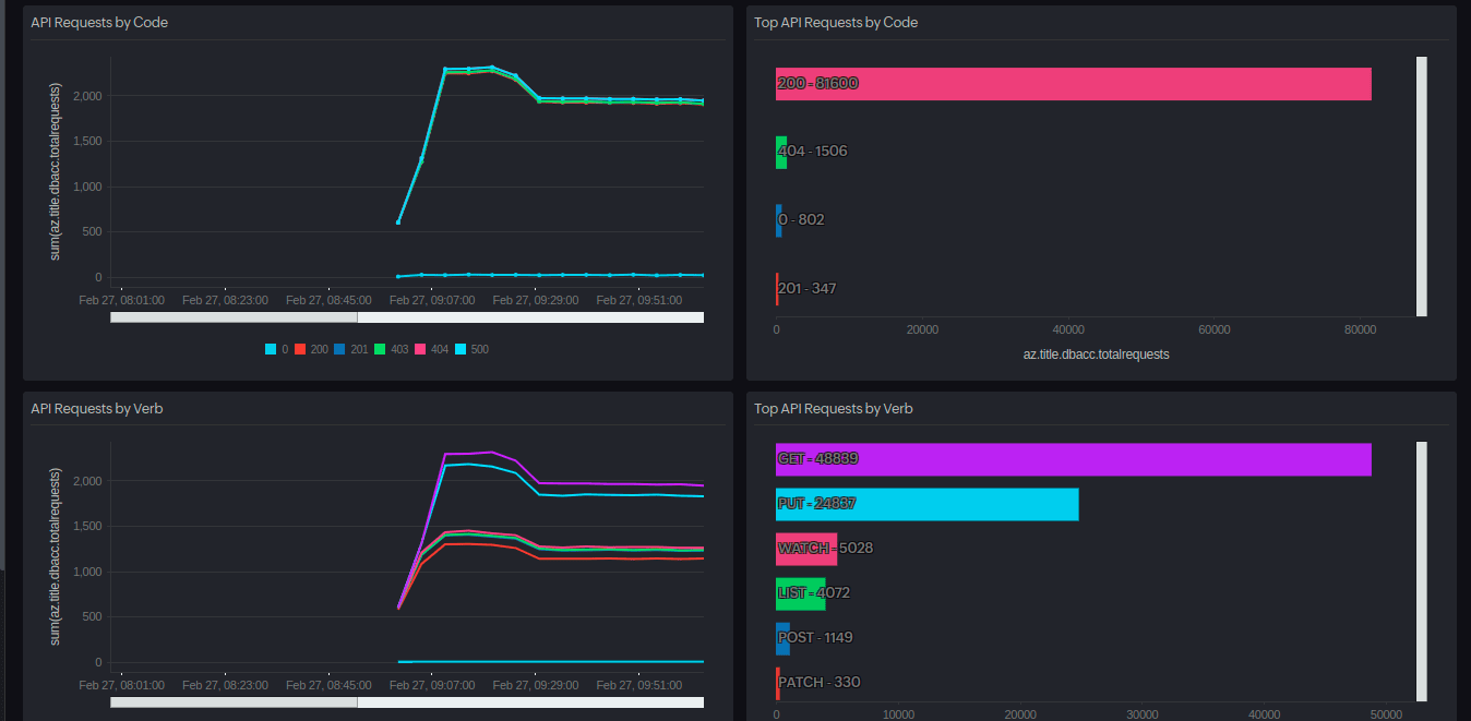 - API requests by the status code (apiserver_request_total ): Helps identify the API requests that are unauthorized
