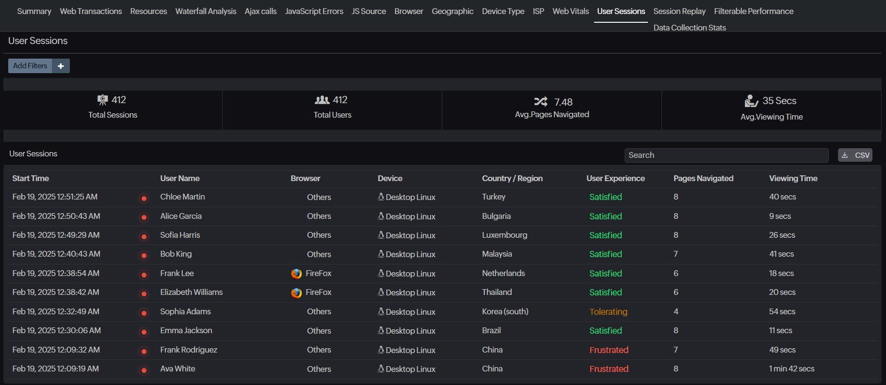 Moreover, with the help of Site24x7 real user monitoring , real-time insights can be obtained on the performance of your site when real users are navigating through the site by getting details on user sessions, web vitals, and more. Businesses can foresee problems and perform proactive remedies using these insights. The dashboards and reports from Site24x7 allow for in-depth analysis of user sessions, user behavior, pain points, and user satisfaction levels. This allows for data-driven enhancements to the customer journey. With the help of Site24x7's mobile applications, users get updates on the status of the monitored resources anywhere, at any time, leaving no chance for major glitches that can impact the user experience.