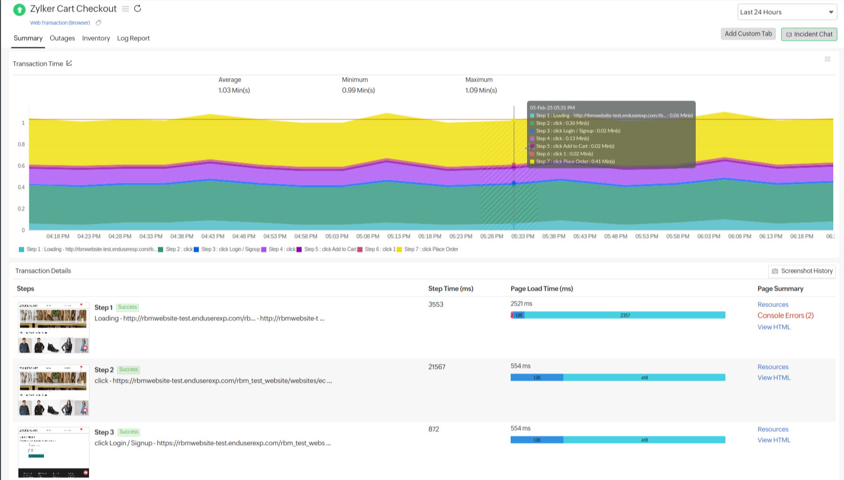 DEM platforms significantly increase engagement and conversions by enabling personalized communication, targeted marketing, and customized suggestions. With Site24x7's synthetic monitoring , the steps in business-critical transactions from the login to the logout stage can be fine-tuned to make them glitch-free. Site24x7 also helps in ensuring that multi-channel experiences are seamless. Synthetic monitoring tools help optimize performance across devices like desktops, tablets, and mobile phones, maximizing user experiences across all platforms.