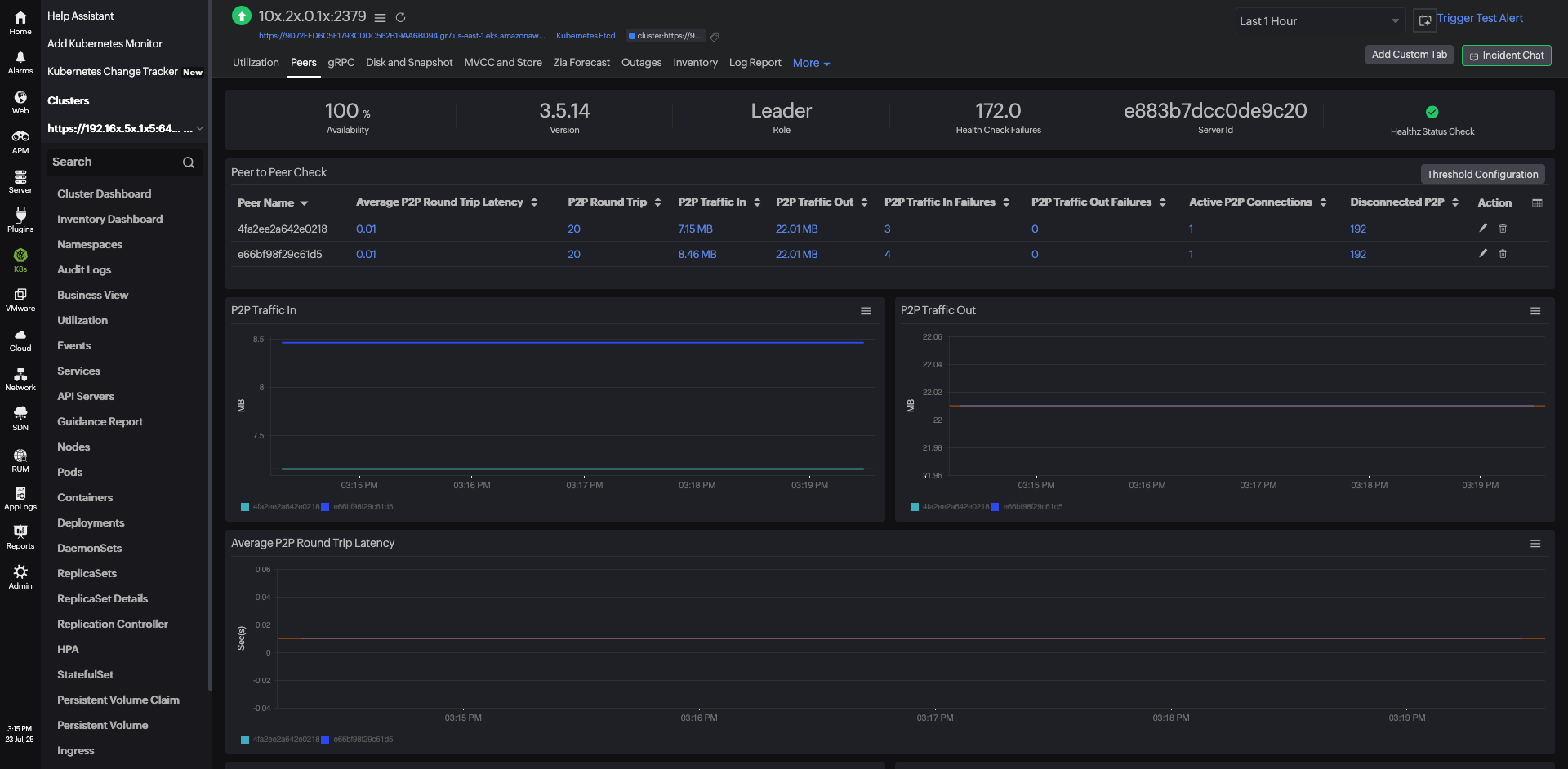 1. Real-time visibility into crucial metrics like the request latency, leader elections, database size, snapshot duration, and disk usage