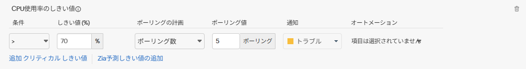 上記の場合、初めの5回のポーリングで70%を超過するため、5回目のポーリングのタイミングでアラートが発生します。