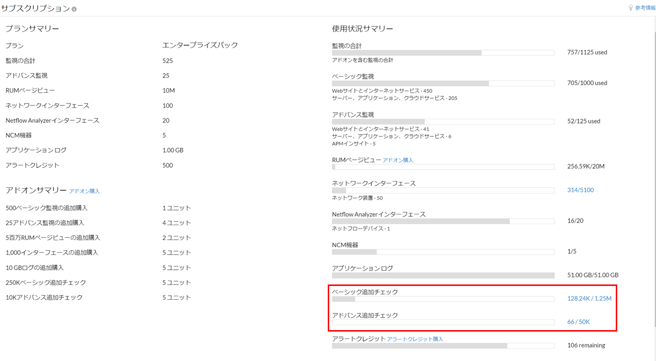 1アドバンス追加チェックを購入すると、10K 回の監視を行えます。