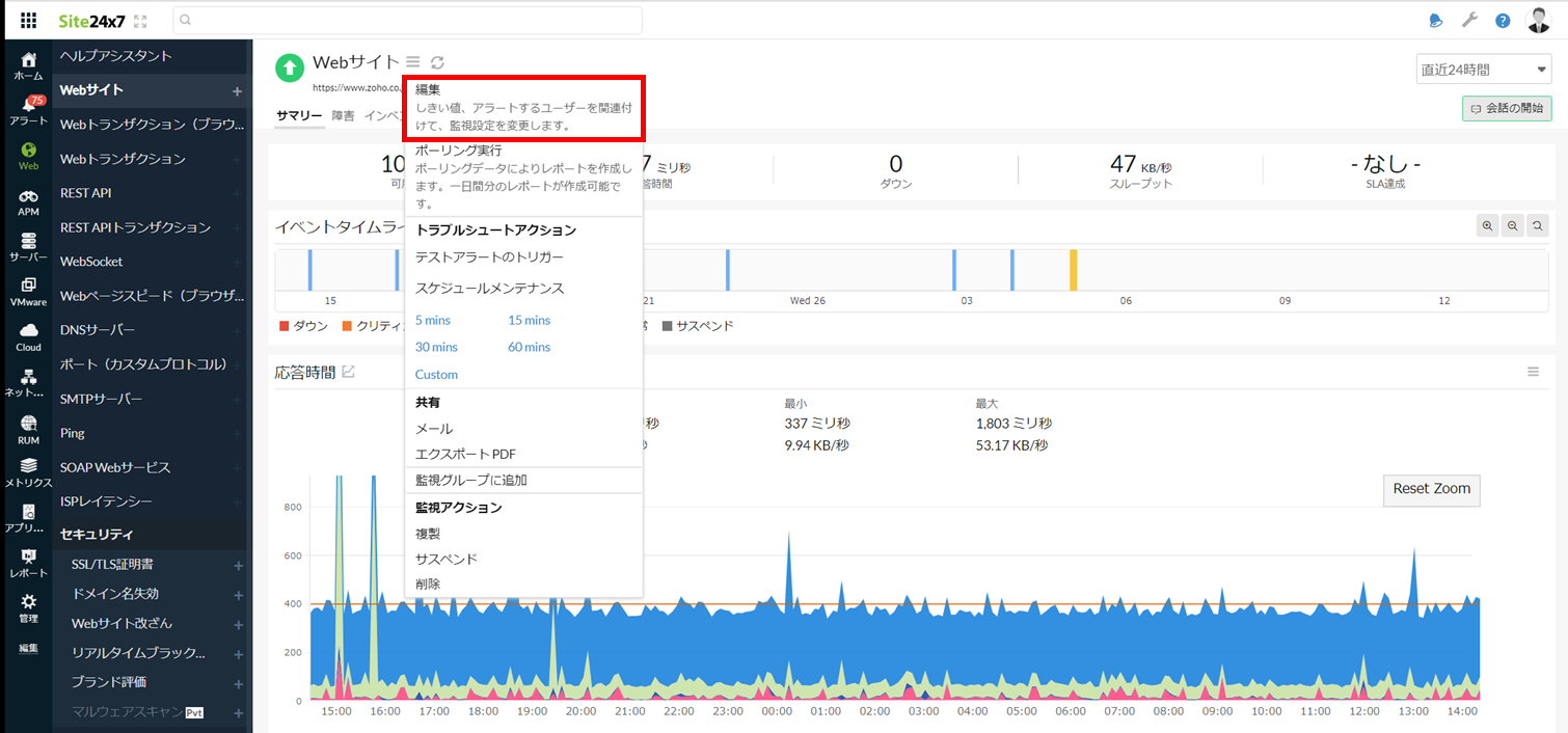 2. 監視名横のハンバーガーアイコンより[編集]をクリックします。