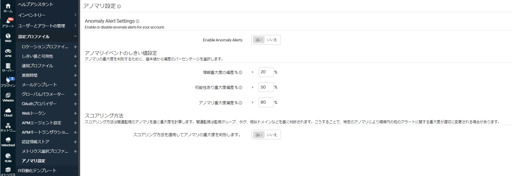 アノマリ検知機能で定められたベースラインから、監視で取得された値がどれだけ乖離しているかの度合いを設ける機能です。