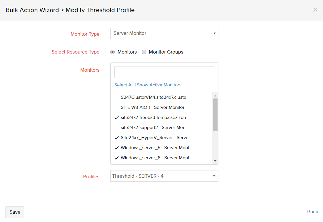 複数のサーバー監視に一括でしきい値プロファイルを関連付ける方法