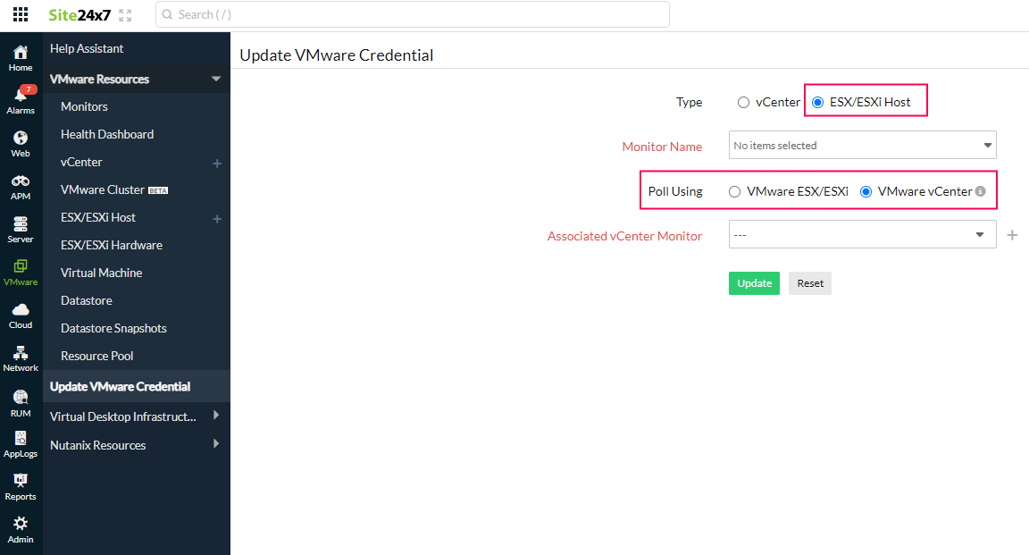 For ESX/ESXi host, - You can either select poll using VMware ESX/ESXi or VMware vCenter credentials.