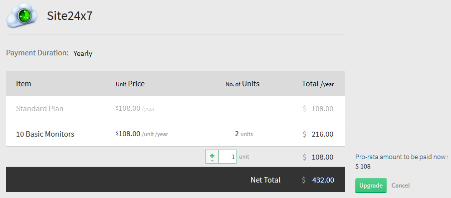 Add-ons and alert packs can be purchased based on your usage requirements and independent of your account upgrade. User can purchase any number of additional add-ons based on their selected package. Site24x7 uses Zoho Stores for all its subscription handling.