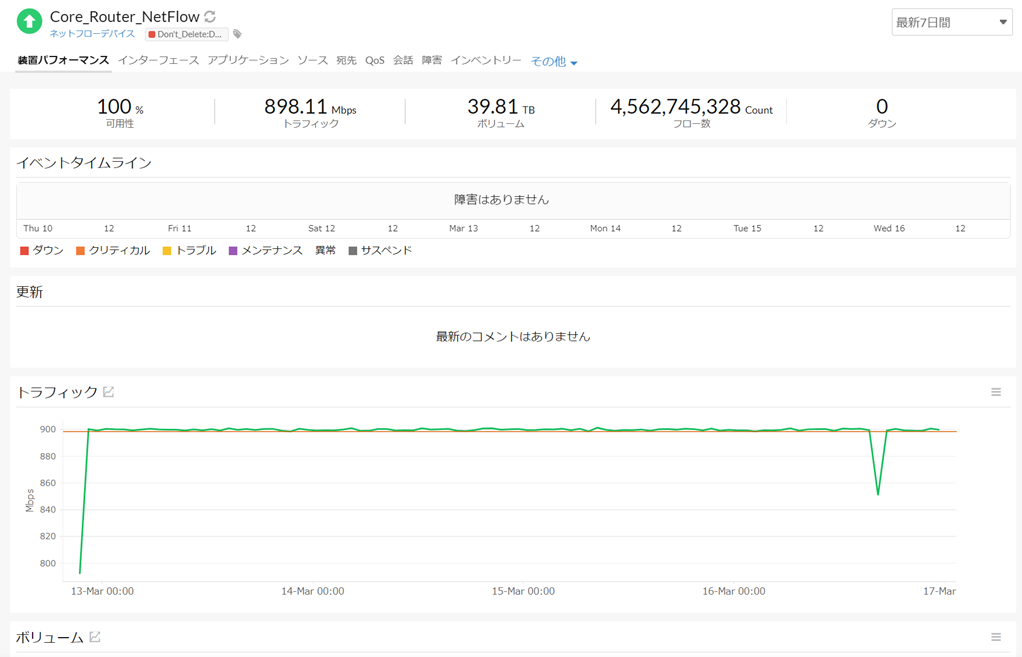 ・NetFlow監視項目 | インターフェース | トラフィック容量 | 〇 | 〇 |