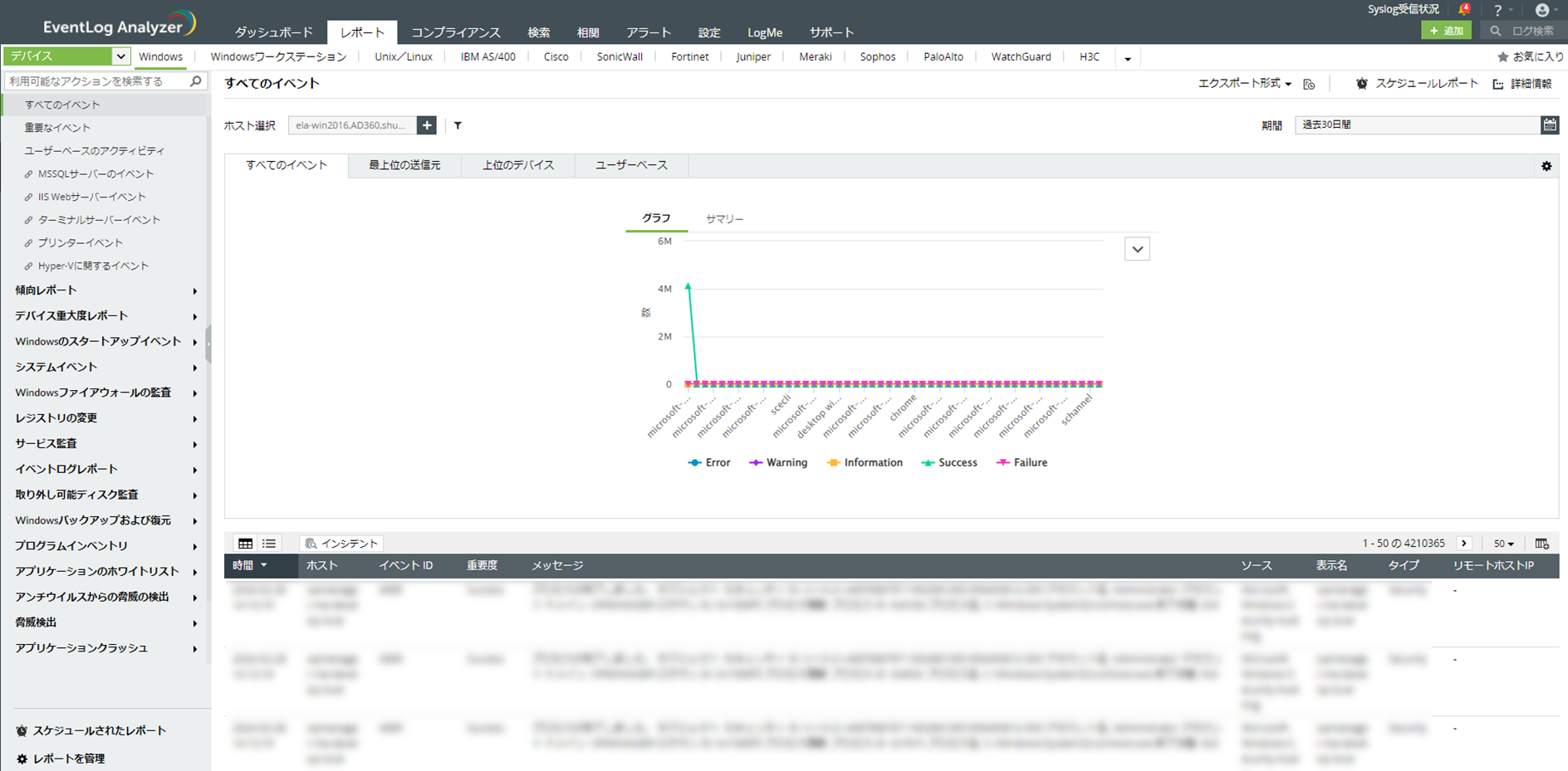 組織ネットワークで生成されるあらゆる種類のログを一元管理(収集・監視・長期保存)できます。