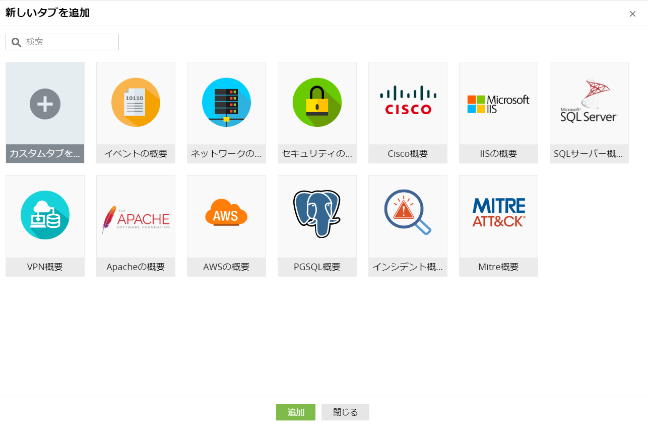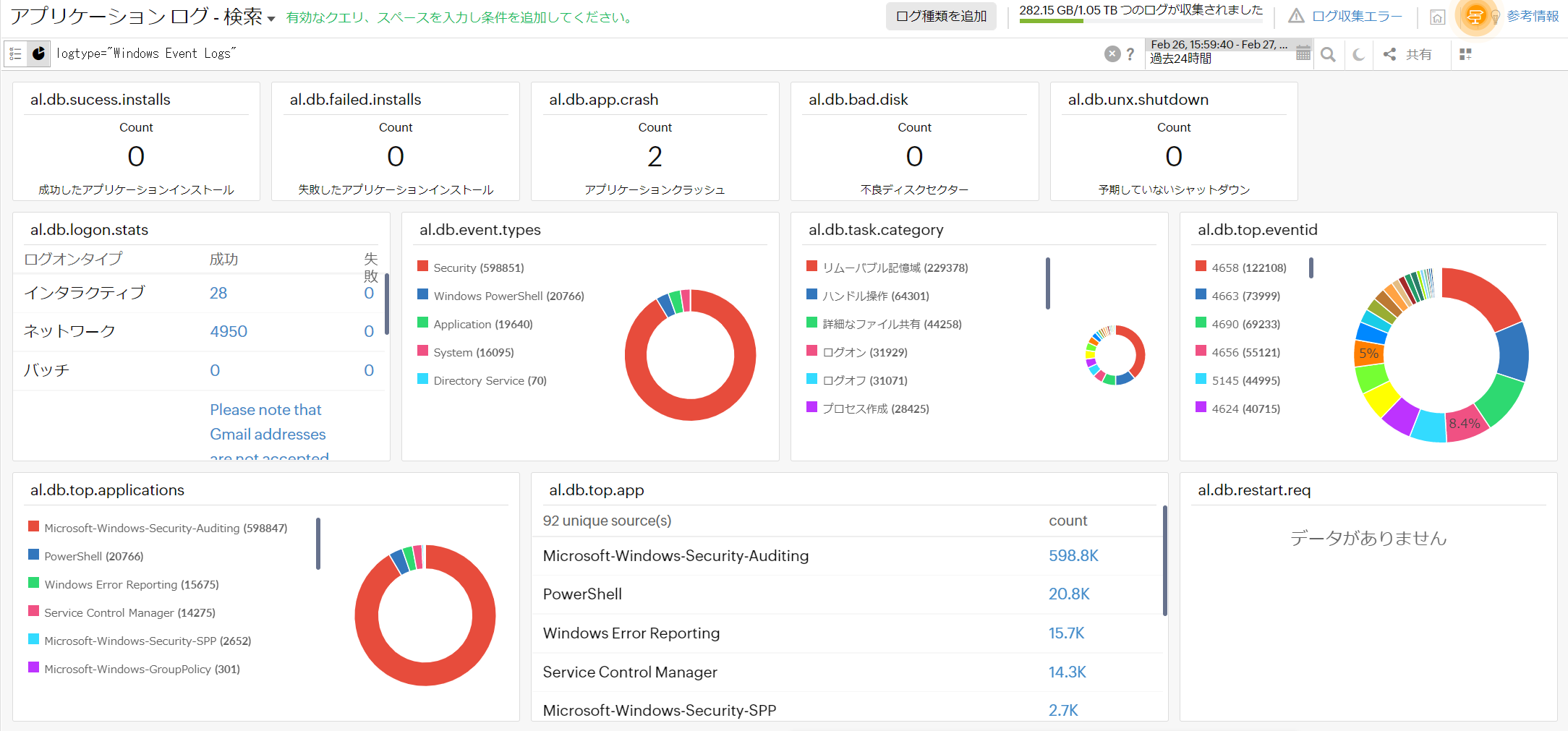 収集したログの種類ごとにダッシュボードにデータを集約し表示します。