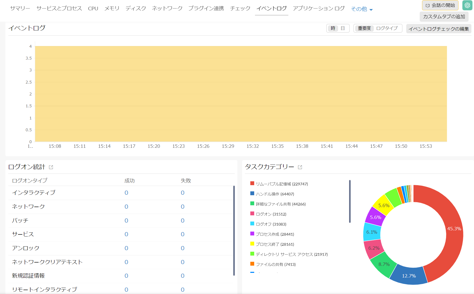 ログの種類またはサーバー監視ごとに、ダッシュボードを表示できます。