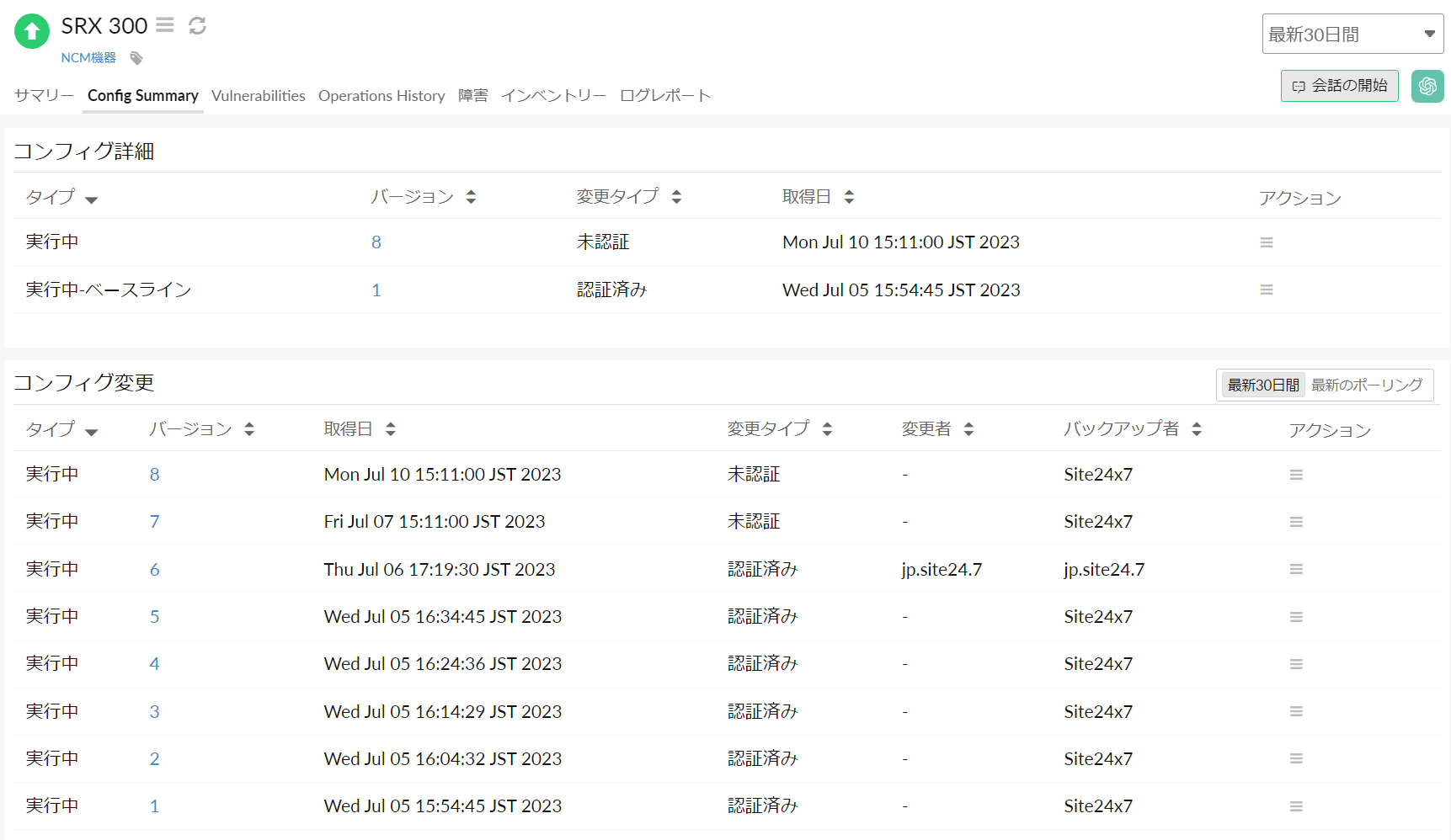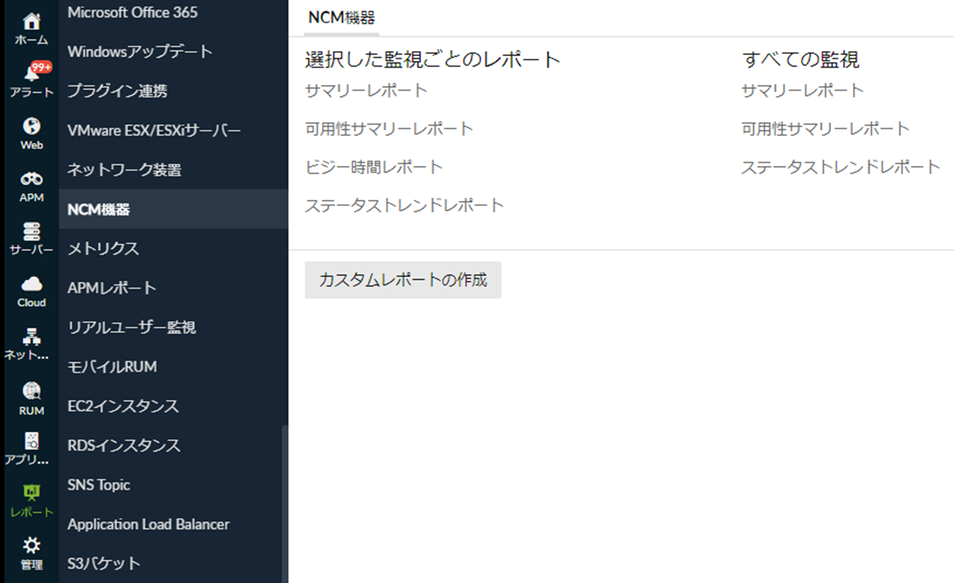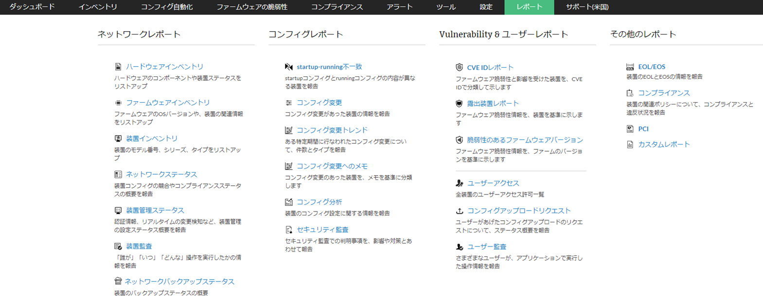 NCMではSite24x7と比べて、よりネットワーク装置やコンフィグ変更に特化したレポートに対応しています。
