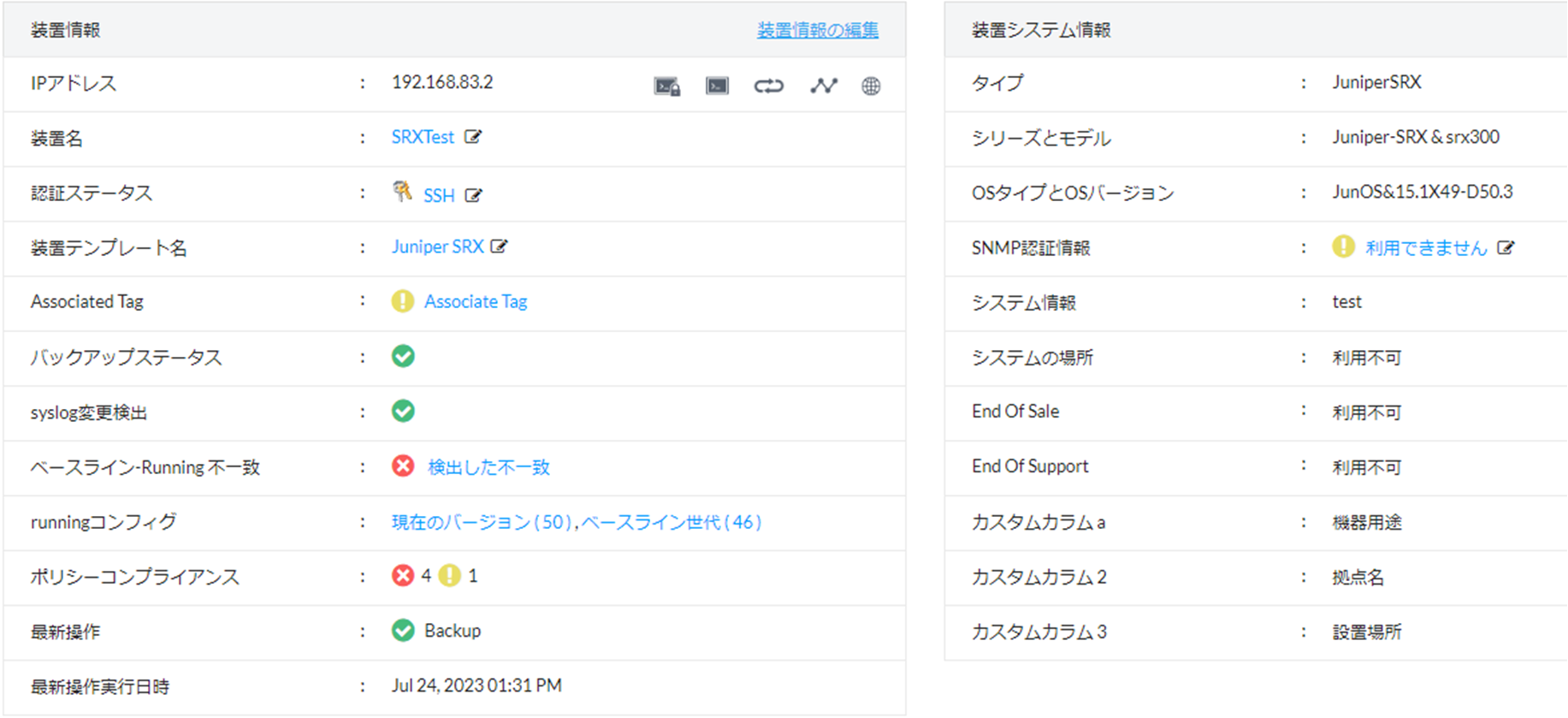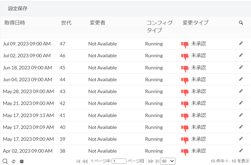 両製品サービスともに、各世代を選択すると取得したコンフィグ情報を表示します。