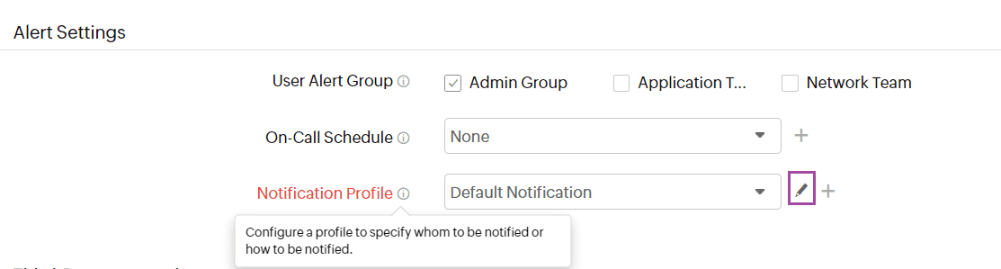 - Go to the Alert Settings section and click the Edit icon against the Notification Profile.