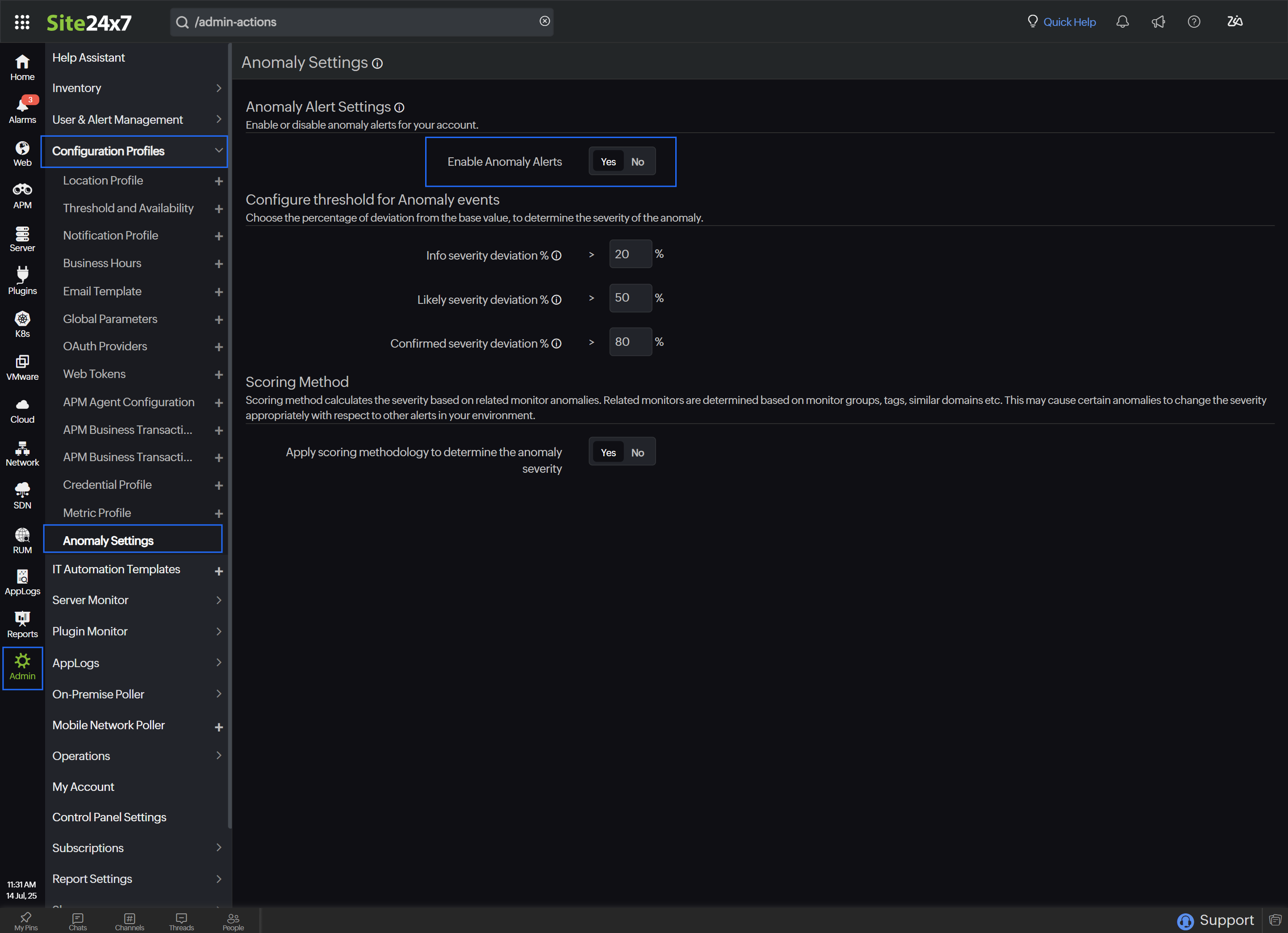 Admin > Configuration Profile > Anomaly Settings > Yes/No.
