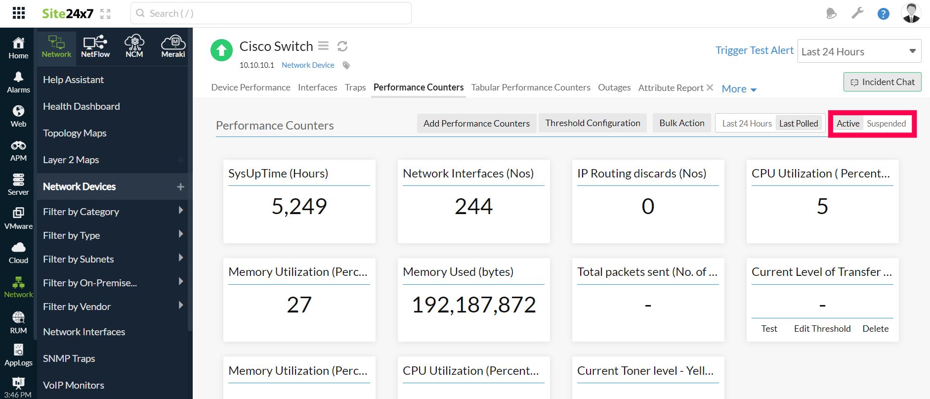 - Toggle between Active and Suspended at the top-right to view the respective performance counters (Figure 1).