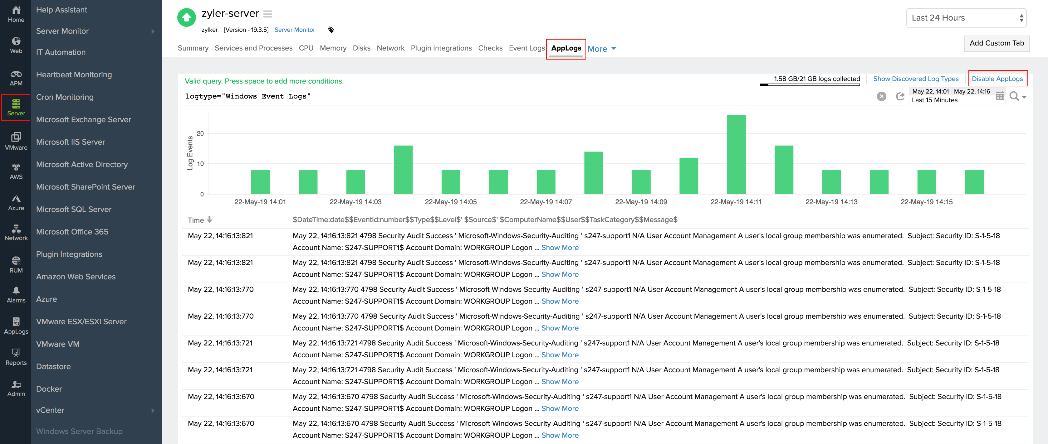 - Go to the AppLogs tab.