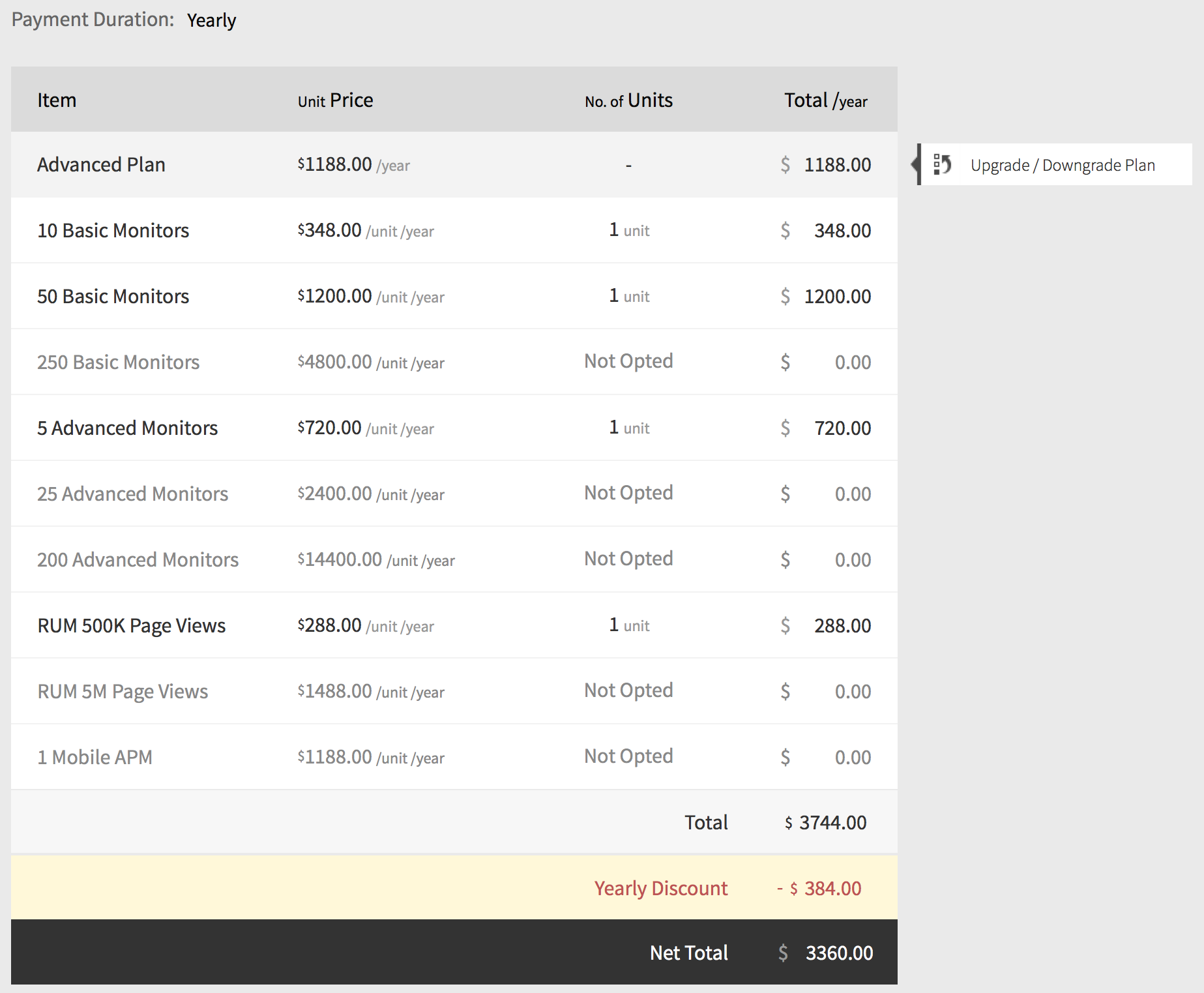 (This is for the reference of users who signed up before 2024) Site24x7's subscription model has a unique concept of Basic monitors and Advanced monitors, based on the type of monitors. It offers a set of Basic monitors, Advanced monitors, RUM ...