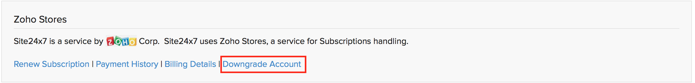 Site24x7サブスクリプションアカウントを無料プランにダウングレードするには次の手順を行ってください。