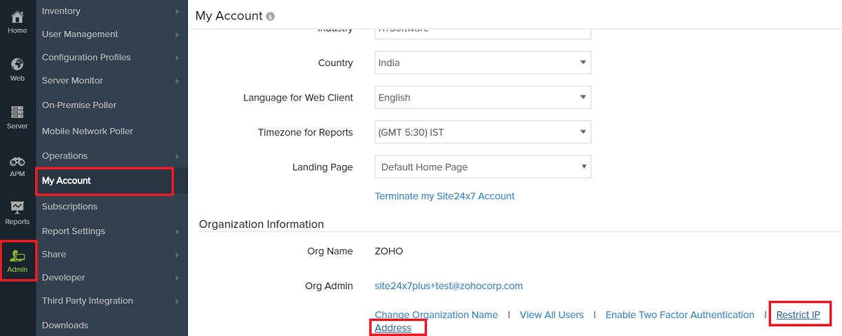 信頼できるIPを設定することでSite24x7へのアクセスを制御し、そのIPアドレスからのログインのみを許可することができます。