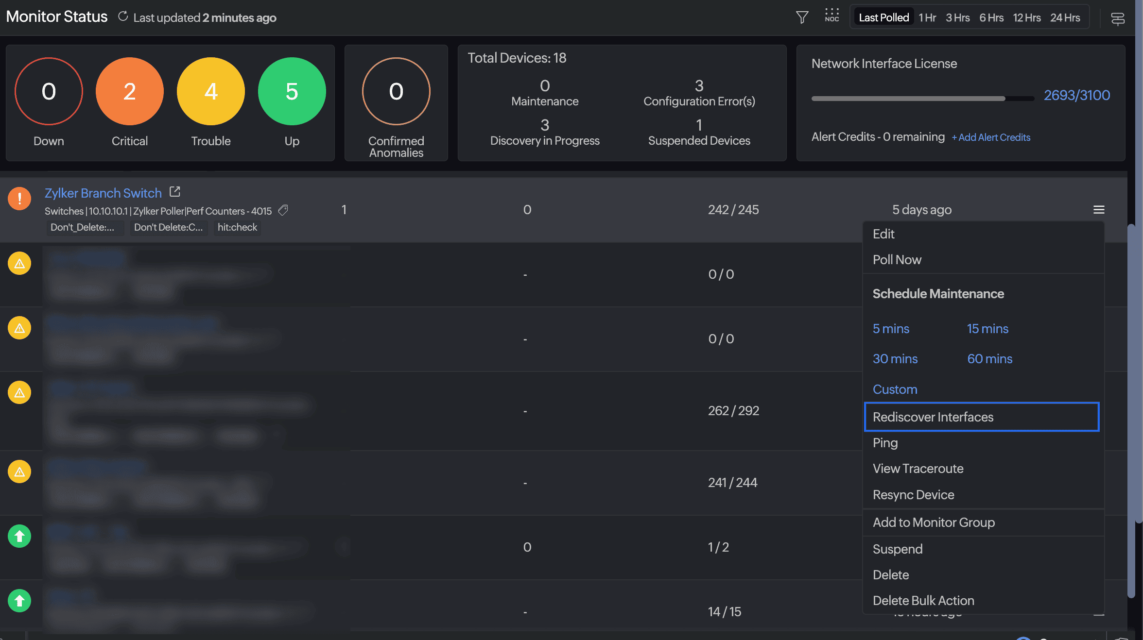 To add the interfaces that do not conform to the discovery rule selected, you can use the Rediscover Interfaces option. For this: