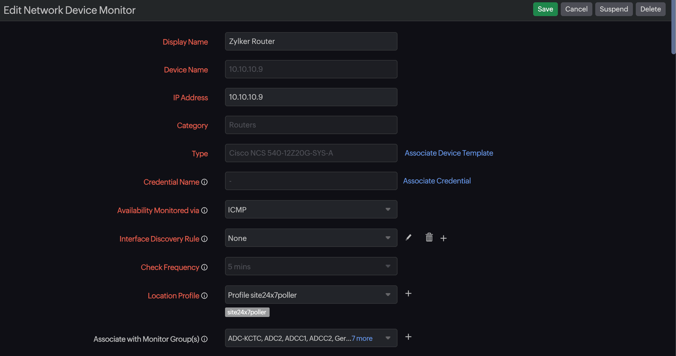 You can edit the following fields in the Edit Network Device Monitor pop-up that opens: