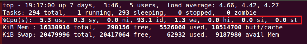 CPU使用率 = ( 100 - 93.1 ) = 6.9%