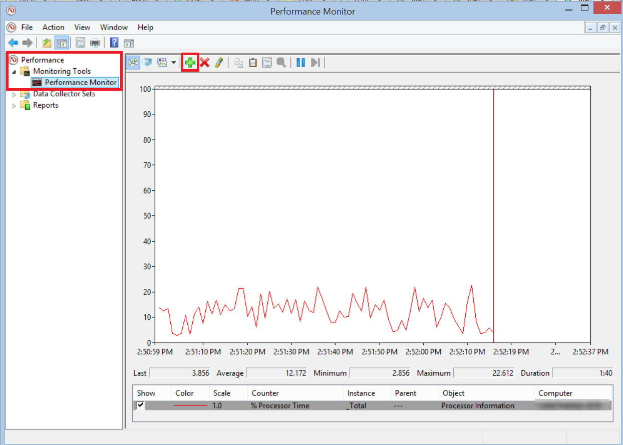 In the perfmon window, expand Monitoring Tools under Performance and select Performance Monitor