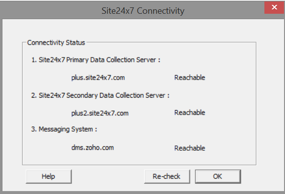 How to check the connectivity to Site24x7 servers from my Windows machine?