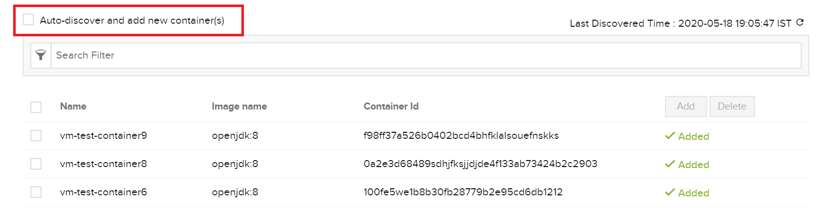 - Uncheck the option Auto-discover and add new container(s).