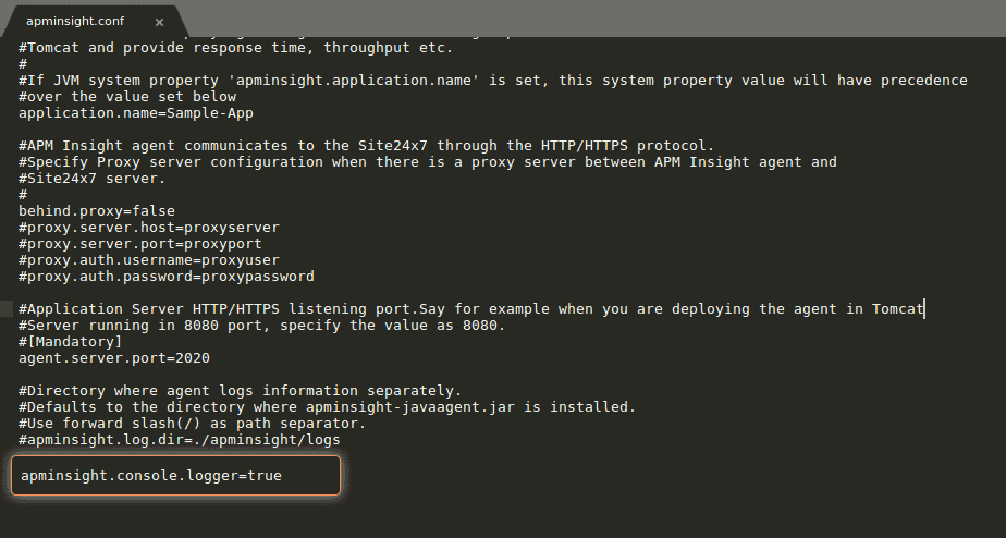 By default, agent logs are written to a log file in the specified or default directory of APM Insight Java agent.