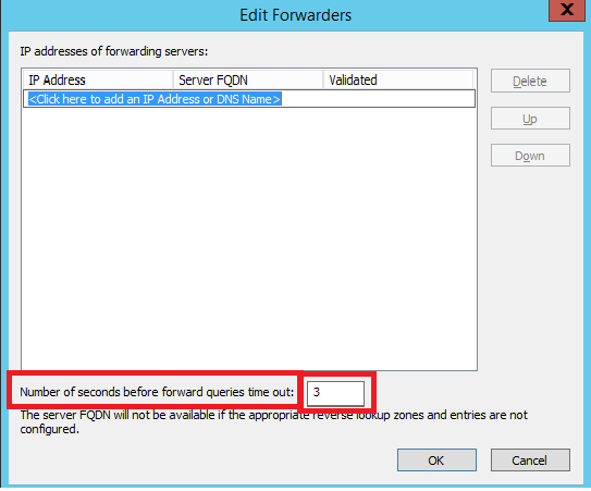 Across the option " Number of seconds before forward queries time out ", change the time-out to 15 seconds