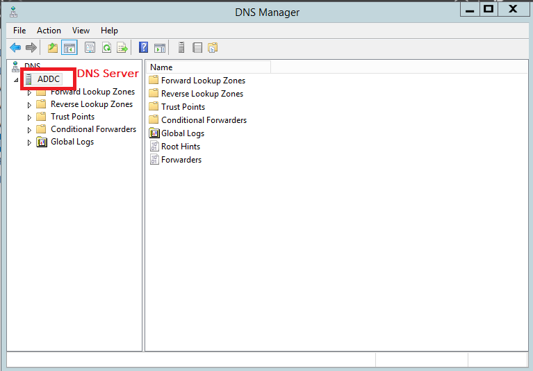 Go to the device where the DNS server is running and open the DNS Manager using the command