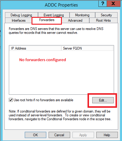 Select tab " Forwarders " and click on Edit