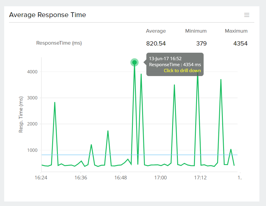 Check the Response time graph to identify any spikes during the respective time period. Click on the individual spikes to view the transactions that triggered the spike to identify the root cause.
