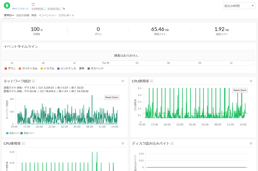 上記手順により連携が完了し、Site24x7上にGCPサービスのメトリックが表示されます。
