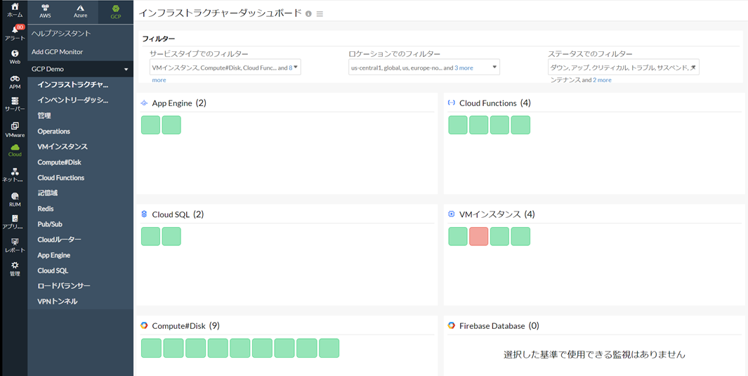 AWS監視、Azure監視、GCP監視についての詳細は次のユーザーガイドをご覧ください。