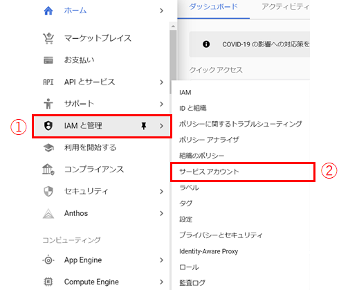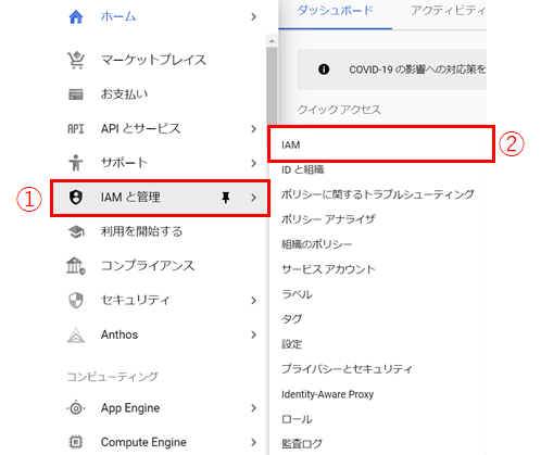 2. [IAMと管理] → [IAM ]の順にクリックします。
