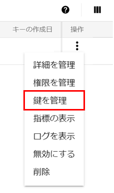 3. 操作欄の3点リーダーをクリックして[鍵を管理]をクリックします。
