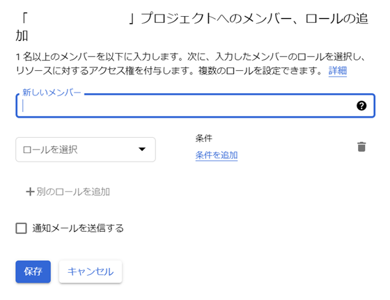 ・メンバー:プロジェクトに追加するメールアドレス