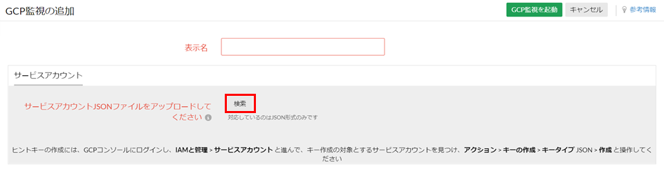 表示名は、GCPアカウント単位の監視名として設定されます。