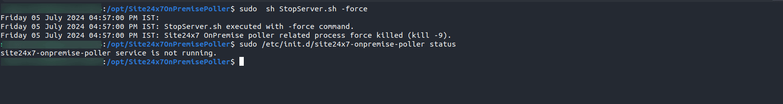 sudo /etc/init.d/site24x7-onpremise-poller status