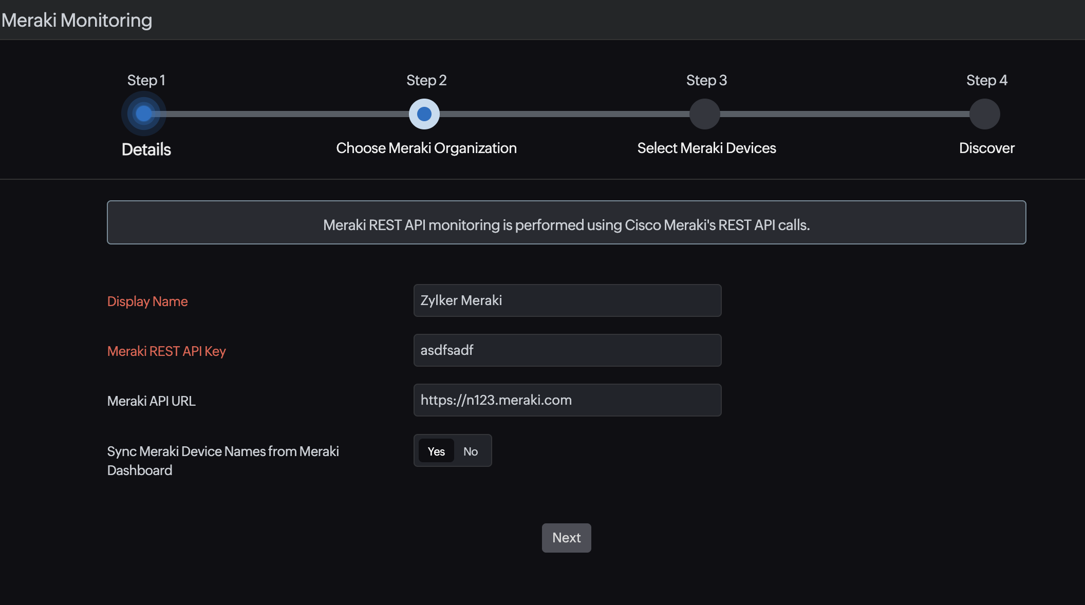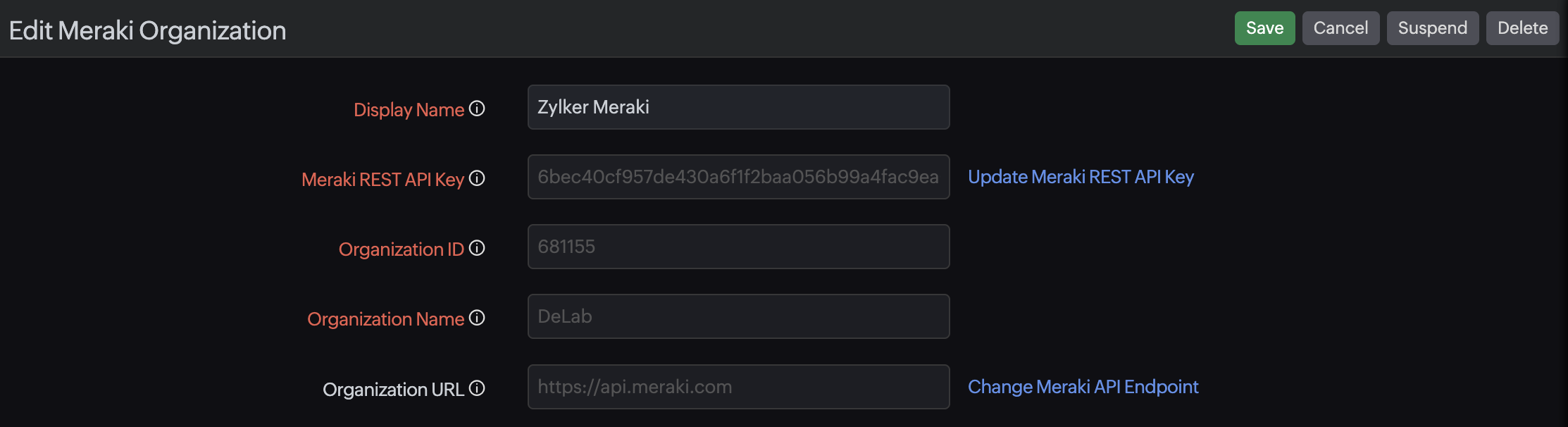 If your Meraki devices aren't being discovered, ensure: The API key is entered correctly. Learn more. The Meraki API has read-only access to your Site24x7 account to discover devices and organizations. Site24x7's IP range must be added to the allowed ...