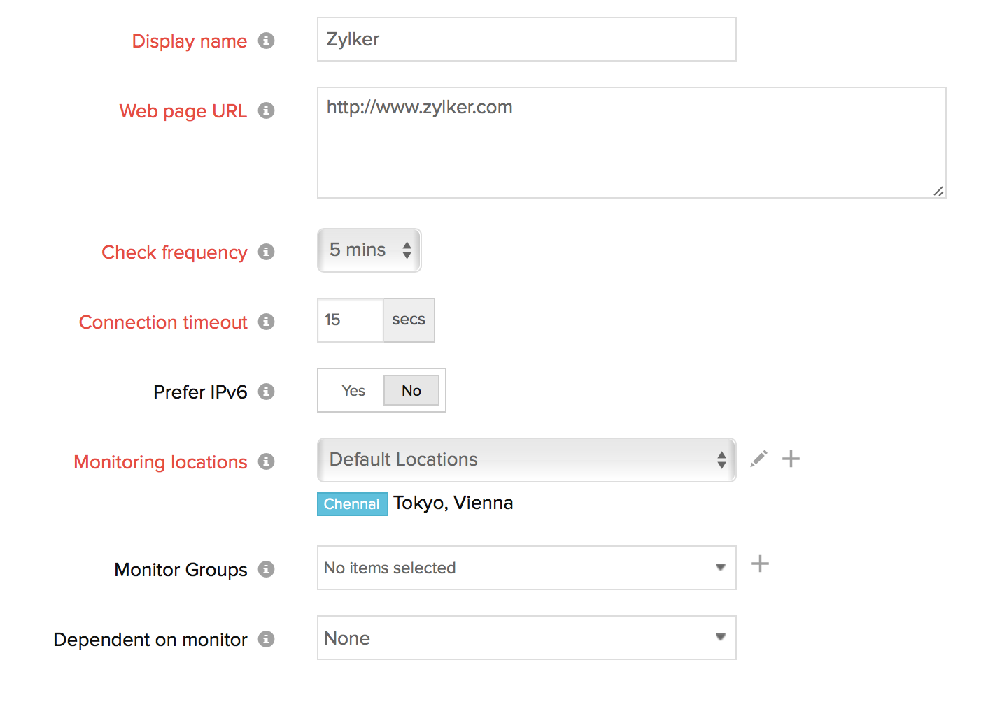 • Specify your preferred monitoring location that you wish to monitor from. You must specify at least a primary location.