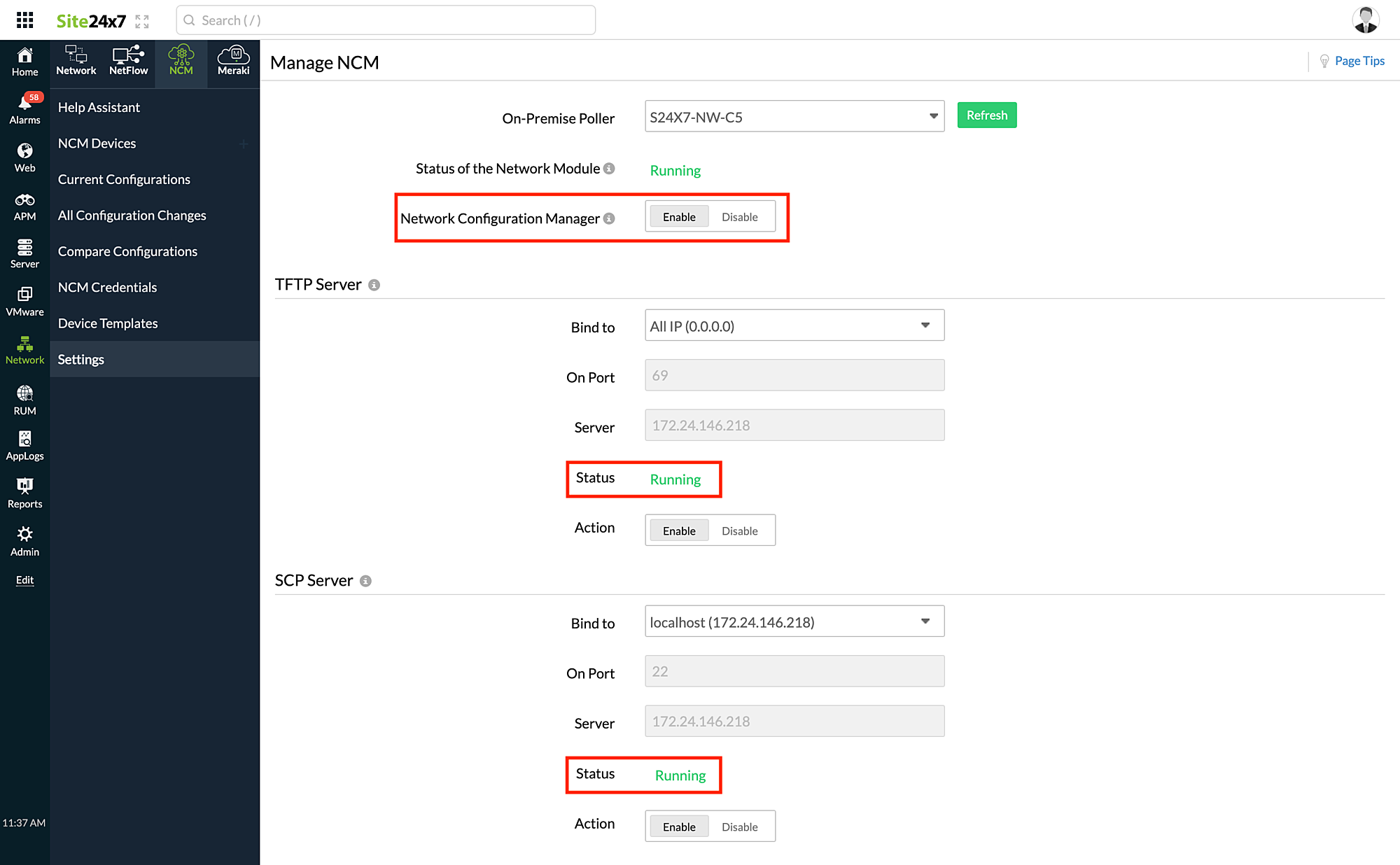 - Verify the Status of the TFTP and SCP servers, if you have chosen the respective protocols.