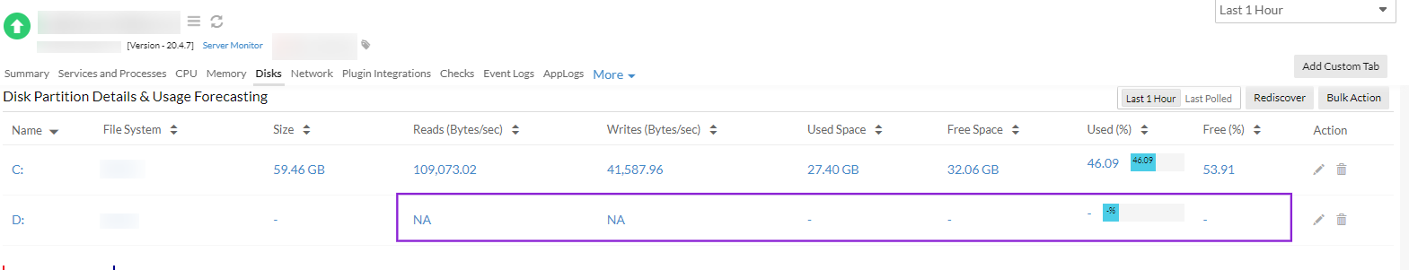 In devices that run Site24x7's Windows Server Monitoring agent, even when a disk partition is detected, data is not displayed.
