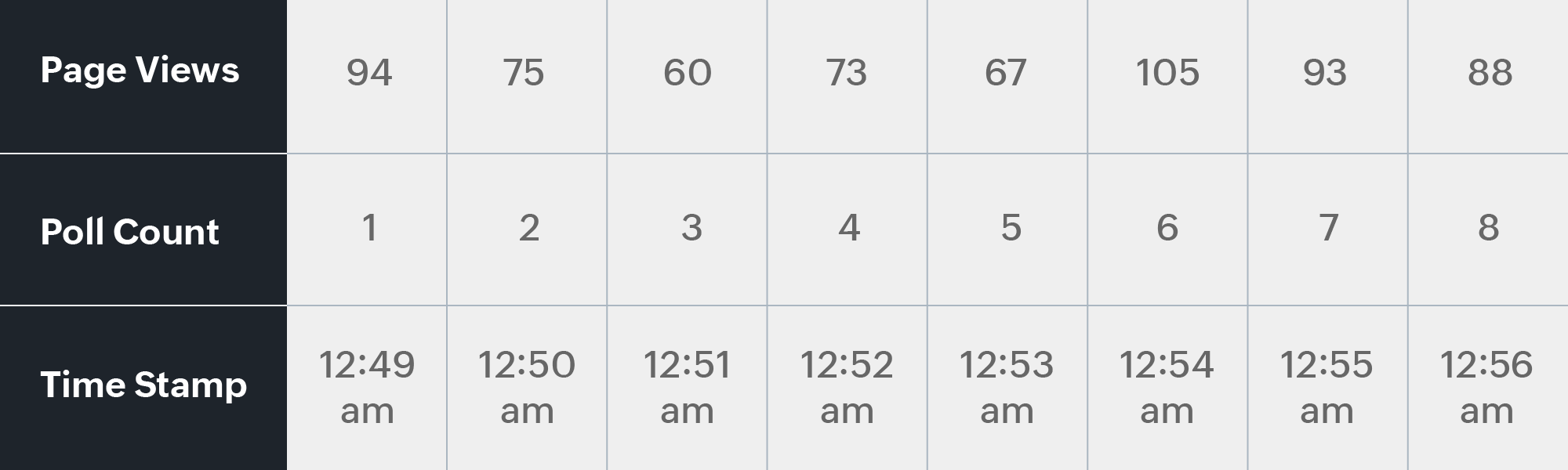 If the lowest page view count recorded during 10 continuous polls is above the threshold, such as 100, then a Trouble alert is sent to the users.